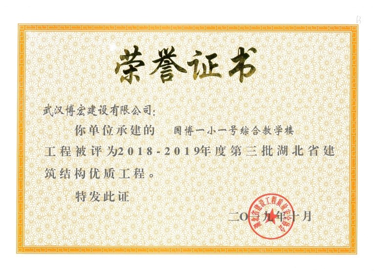 結(jié)構(gòu)優(yōu)質(zhì)工程證書(郭茨口小學(xué))