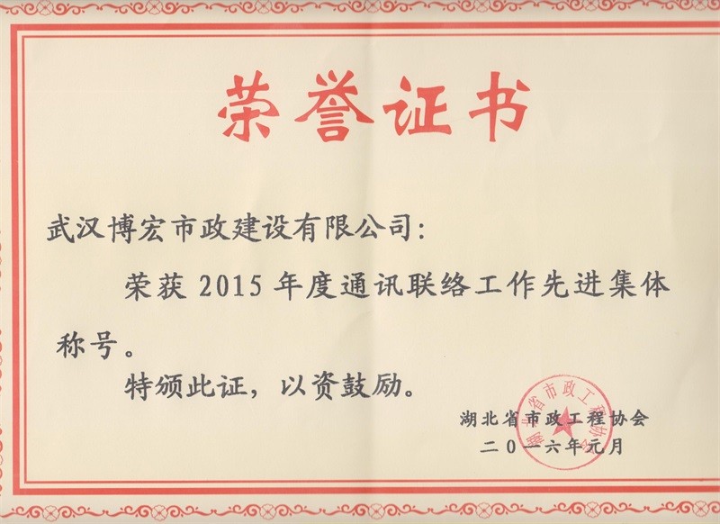 2015年度通訊聯絡工作先進集體稱號
