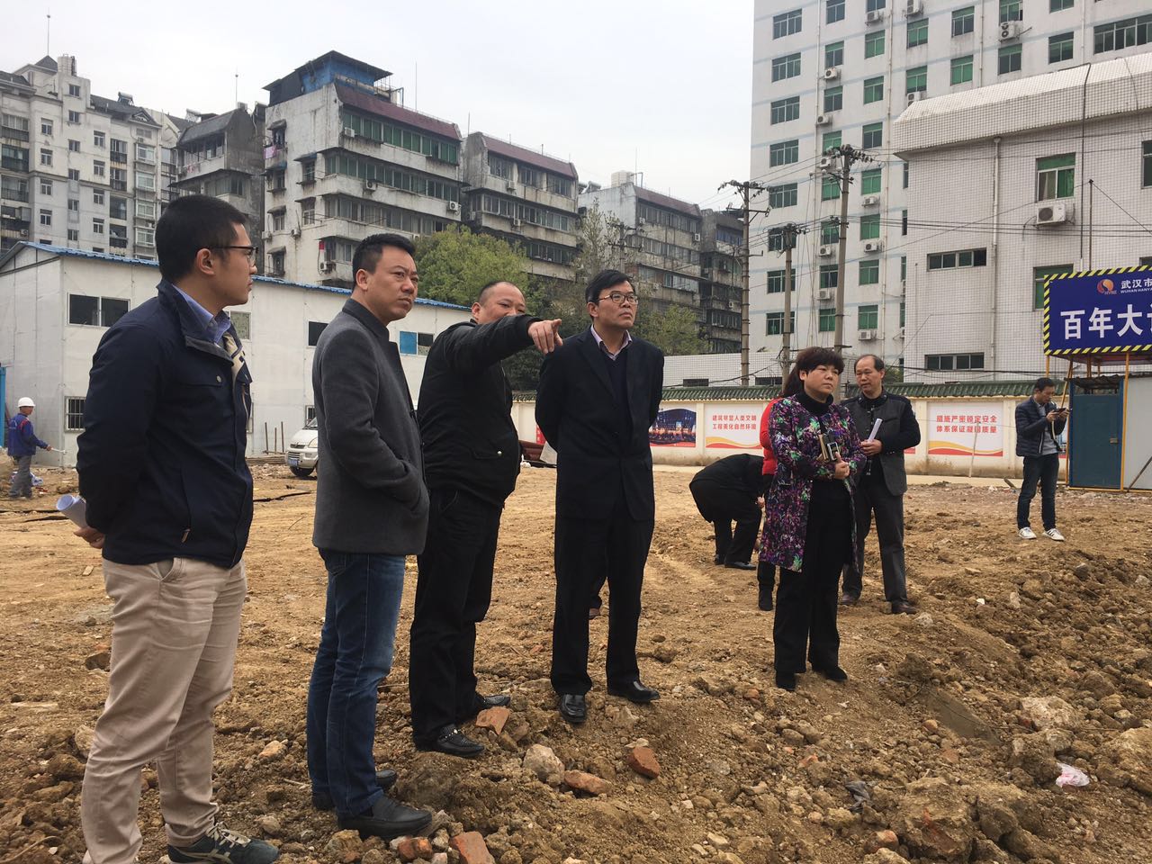 五醫(yī)院西院綜合大樓項(xiàng)目作為漢陽市政2017年重點(diǎn)房建項(xiàng)目之一,得到了各級(jí)領(lǐng)導(dǎo)的高度關(guān)注。3月10日,漢陽區(qū)政府副區(qū)長肖永久率區(qū)政府辦、發(fā)改委、規(guī)劃局、消防大隊(duì)等單位領(lǐng)導(dǎo)一行,蒞臨“新建武漢市第五醫(yī)院西院綜合大樓(全科醫(yī)生臨床培養(yǎng)基地)”項(xiàng)目施工現(xiàn)場視察指導(dǎo)工作,漢陽市政博宏公司總經(jīng)理錢濤以及項(xiàng)目負(fù)責(zé)人陪同視察。