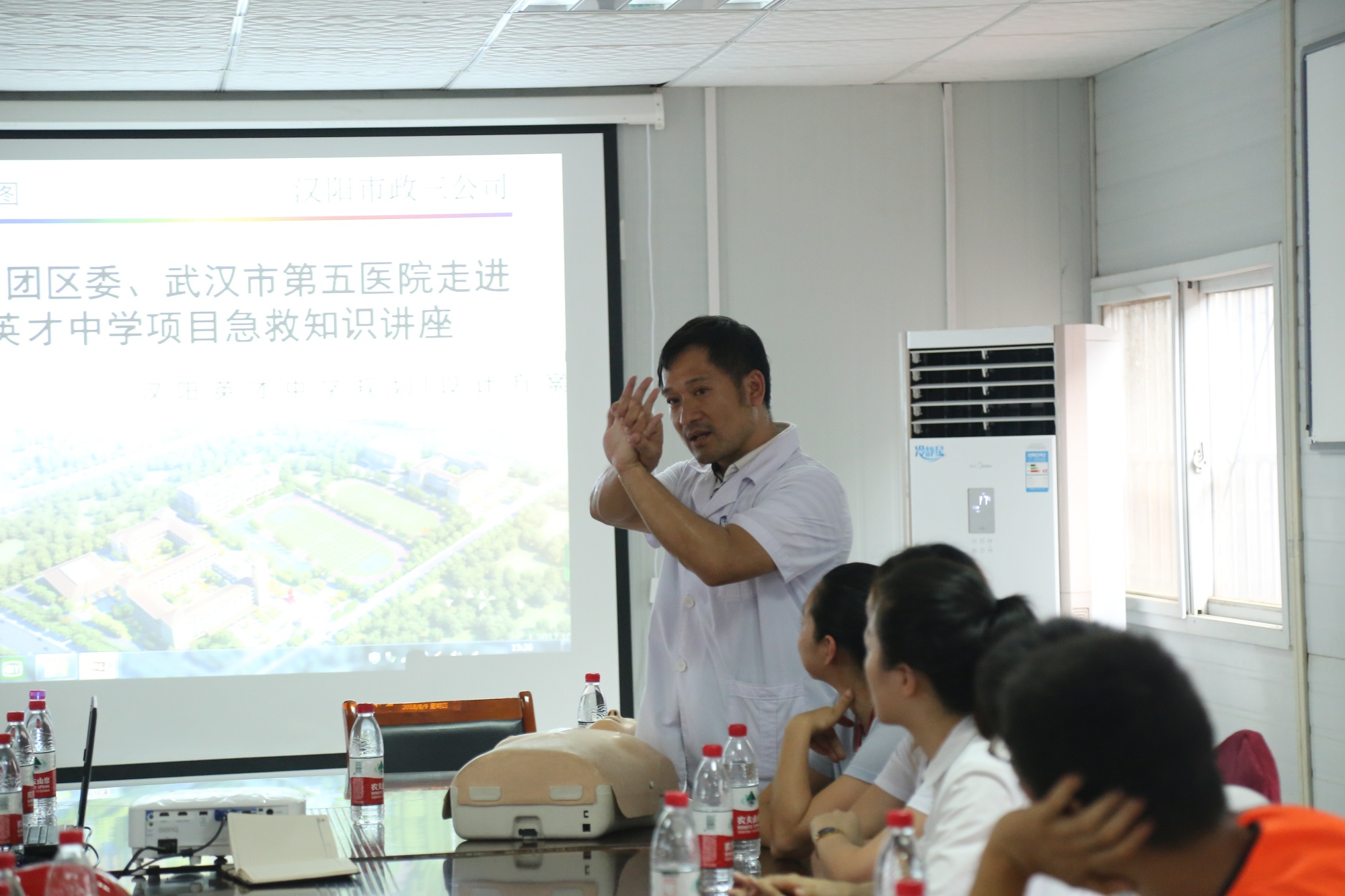 8月的武漢,炎熱依舊,為了給職工帶來一絲清涼,團(tuán)區(qū)委及五醫(yī)院一行人為職工帶來了一批防暑降溫飲品及相關(guān)日用品,幫助公司職工在高溫天氣里正常開展建設(shè)工作。隨后,針對施工現(xiàn)場工作環(huán)境,五醫(yī)院急診科主任鄭先念醫(yī)生開展了專題安全講座,重點(diǎn)針對工地易發(fā)的中暑、觸電、高墜、物體打擊等安全事故的救援方式進(jìn)行了通俗易懂的講解,糾正了一些救援過程中常見的錯誤做法,進(jìn)一步提升了公司職工及廣大工友的安全救援意識及技能。