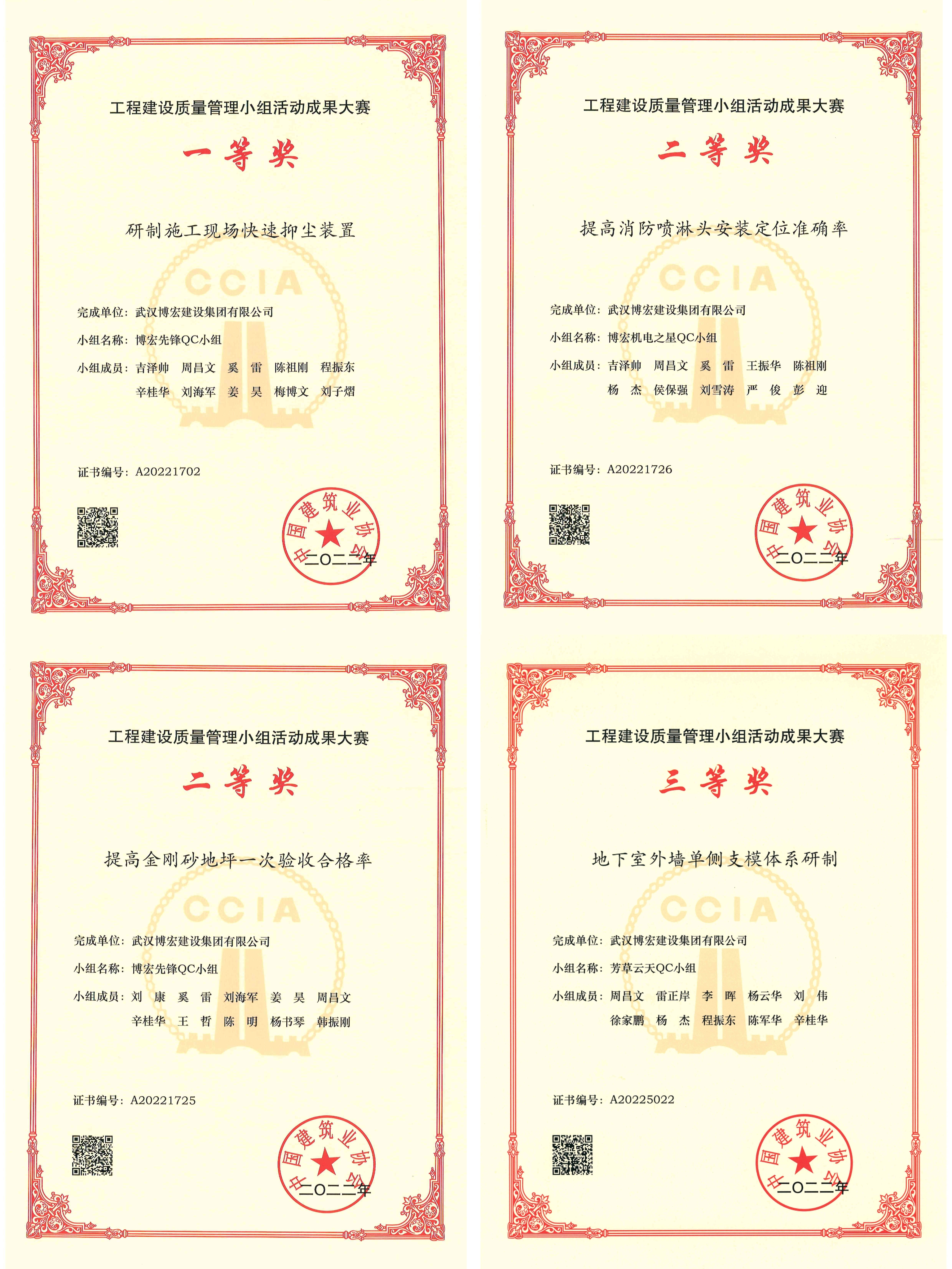 近日,由中國建筑業(yè)協(xié)會主辦的“2022年工程建設質量管理小組活動成果大賽”獲獎名單公布,博宏建設集團榮獲4個獎項。