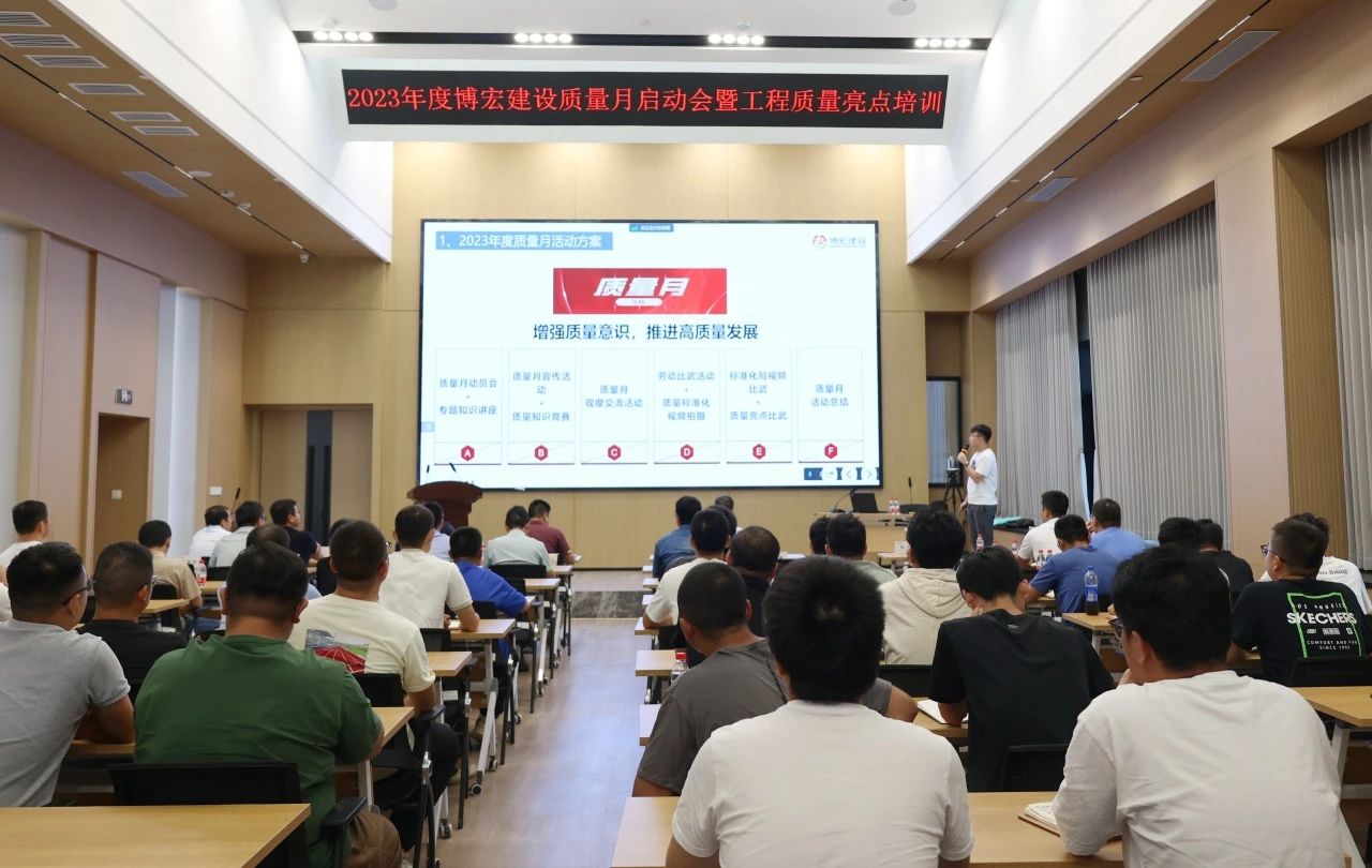 今年9月是第45個(gè)全國質(zhì)量月,為全面貫徹黨的二十大精神,落實(shí)《質(zhì)量強(qiáng)國建設(shè)綱要》部署,促進(jìn)質(zhì)量強(qiáng)國建設(shè)。9月15日下午,博宏建設(shè)舉辦以“增強(qiáng)質(zhì)量意識(shí),推進(jìn)質(zhì)量發(fā)展”為主題的2023年質(zhì)量月啟動(dòng)會(huì)暨工程質(zhì)量亮點(diǎn)培訓(xùn),黨委書記、董事長、總經(jīng)理鄒勇,總經(jīng)理助理李暉,質(zhì)量管理部部長、市內(nèi)外各項(xiàng)目部負(fù)責(zé)人及質(zhì)量崗位人員共計(jì)101人線上線下同步參與活動(dòng)。