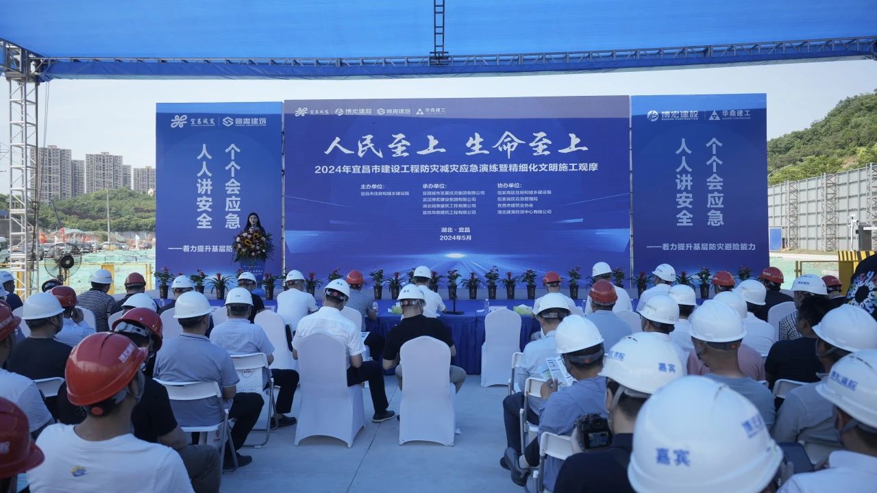 5月17日下午3點,由宜昌市住房和城鄉建設局主辦,武漢博宏建設集團有限公司等四家單位共同承辦的2024年宜昌市住建系統防災減災應急演練暨精細化文明施工觀摩,在公司的宜昌城發·望春山項目現場順利舉行。